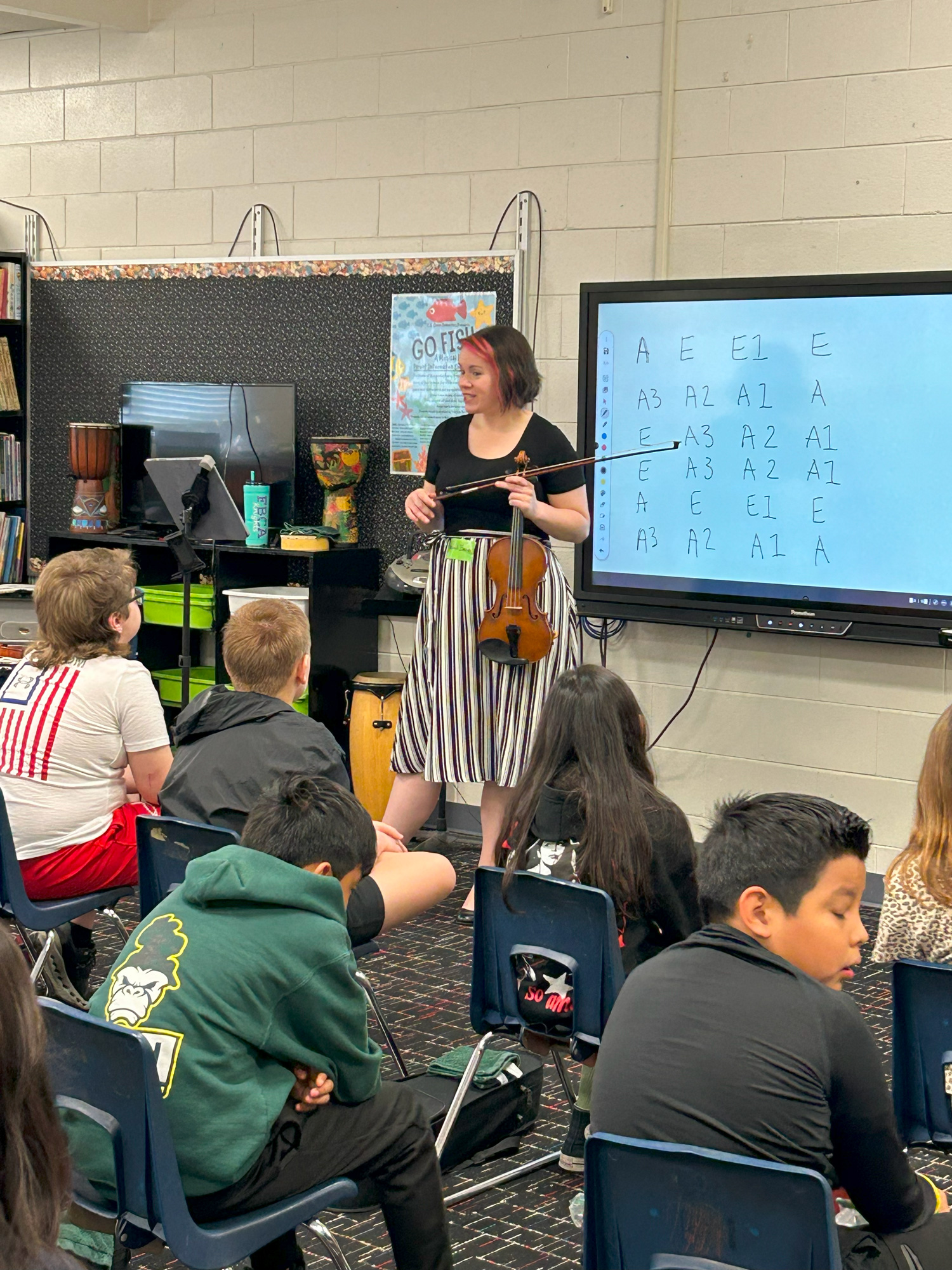 Throughout the week, students learned the basics of playing the violin, including plucking and bowing techniques, and even mastered a short unison piece. On the Friday, they had the exciting opportunity to meet a professional musician, Hannah Barrow, who shared her journey as a violinist and performed for the students.